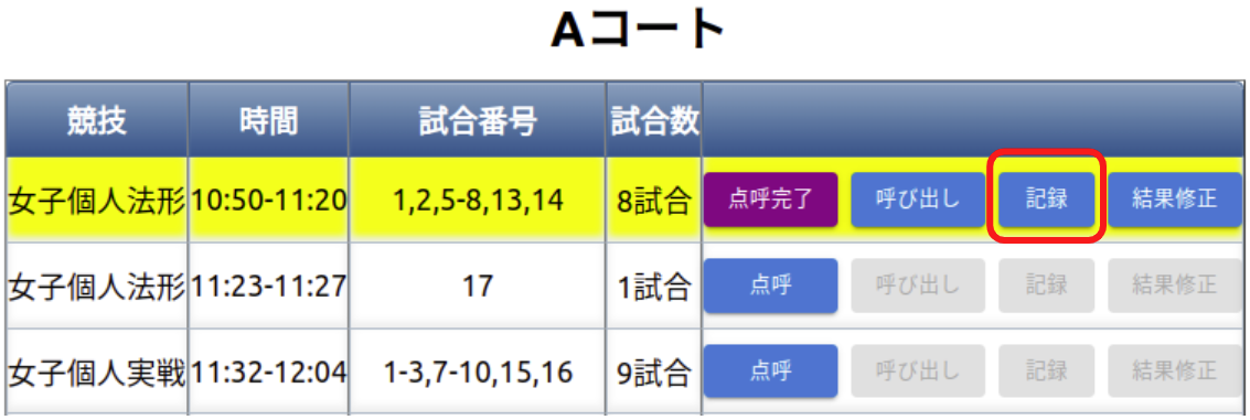 ② 競技の「記録」選択 (点呼が完了すると選択可)