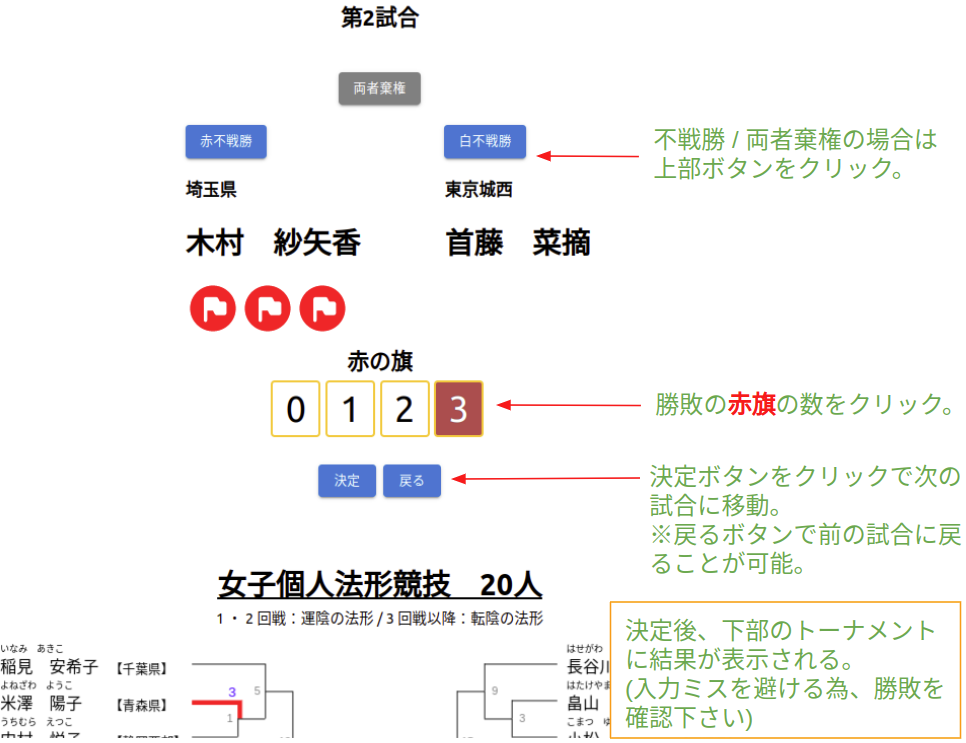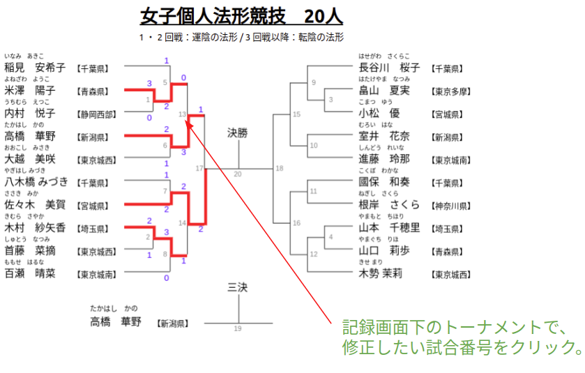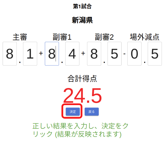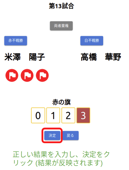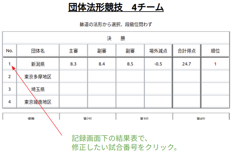 ※競技終了後は、以下「結果修正」ボタンをクリックすると修正画面に移動できる。