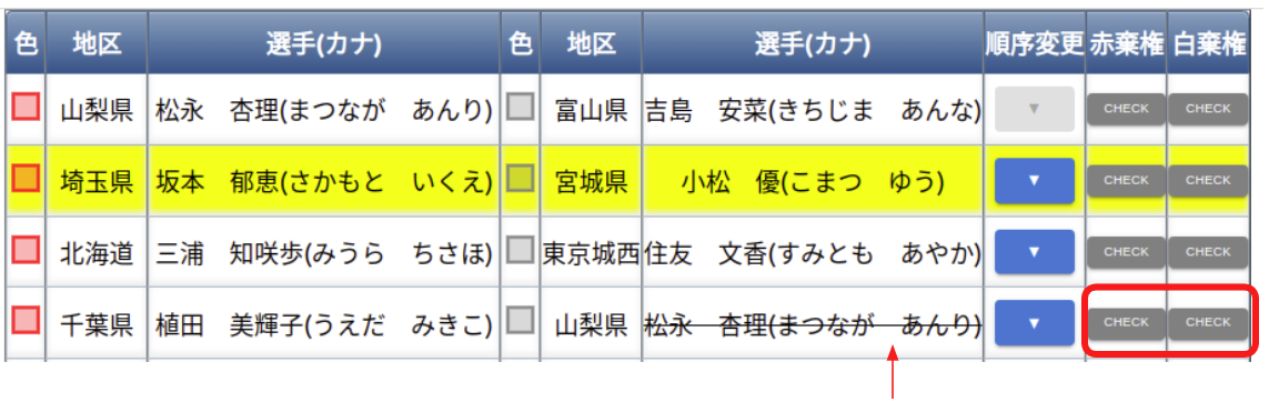 ※赤・白棄権ボタンをもう一度押下すると取り消し線は消えます。